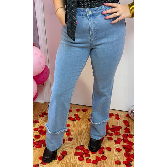 Frayed Hem Detail Jeans, Light Wash
