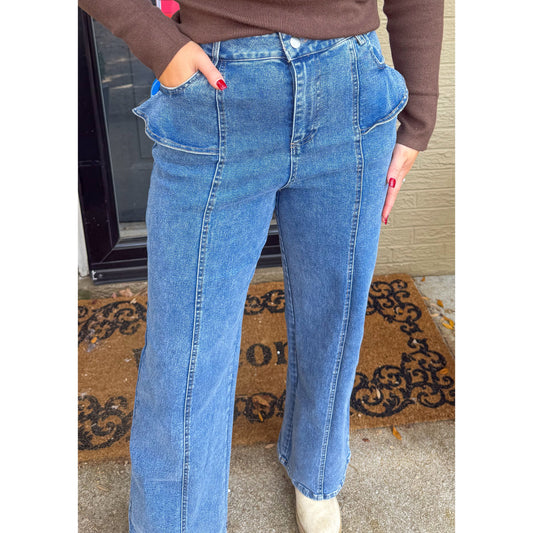 Maddie Ruffle Detail Jeans, Medium Wash