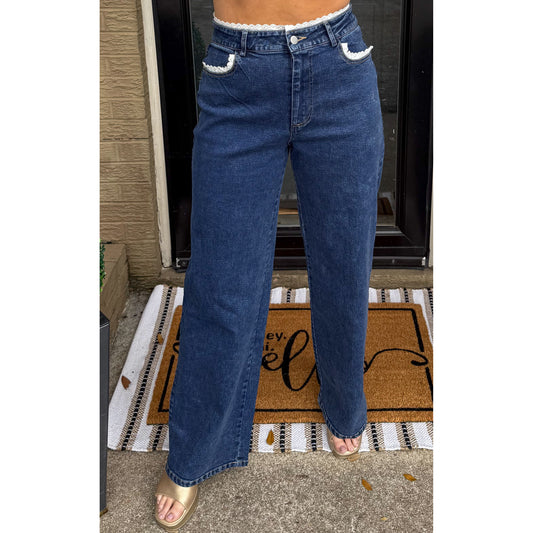 Trim Detail Wide Leg Jeans