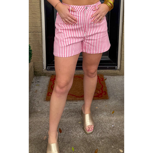 Pink/White Stripe Denim Shorts