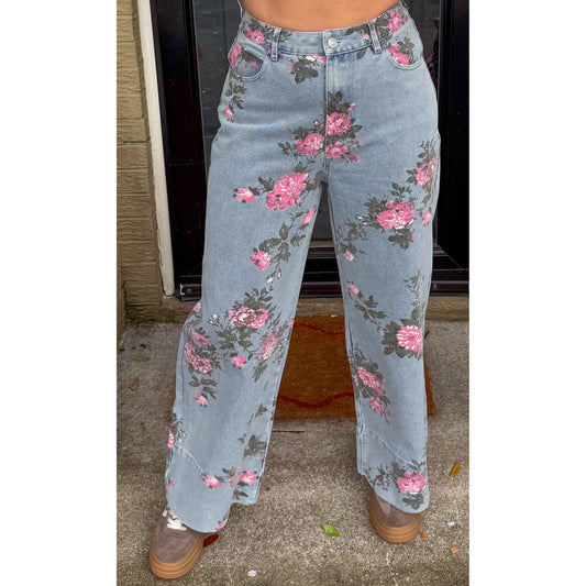 Floral Pattern Denim Jeans