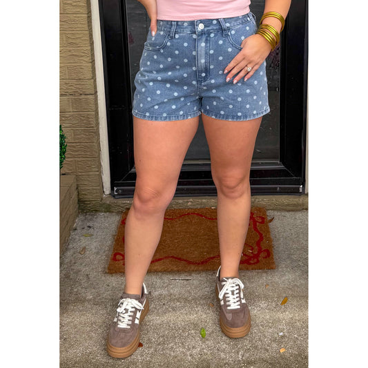 Polka Dot Denim Shorts