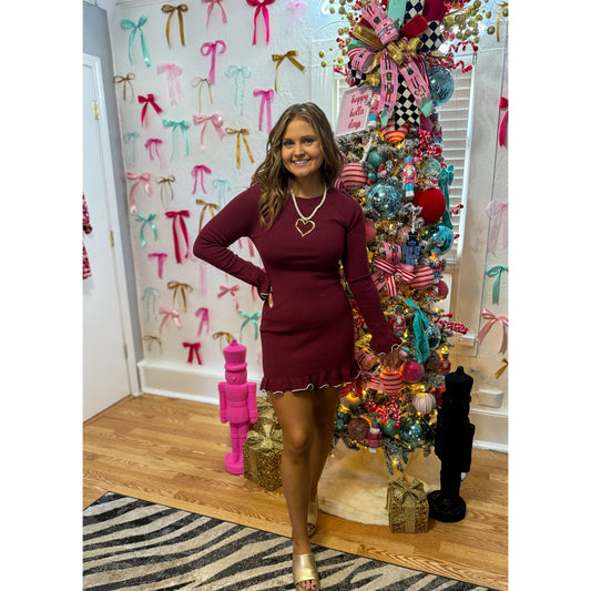 Shelby Knit Mini Dress, Burgundy/Ivory