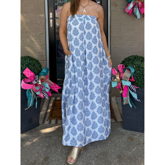 Paisley Maxi Dress, Blue/White