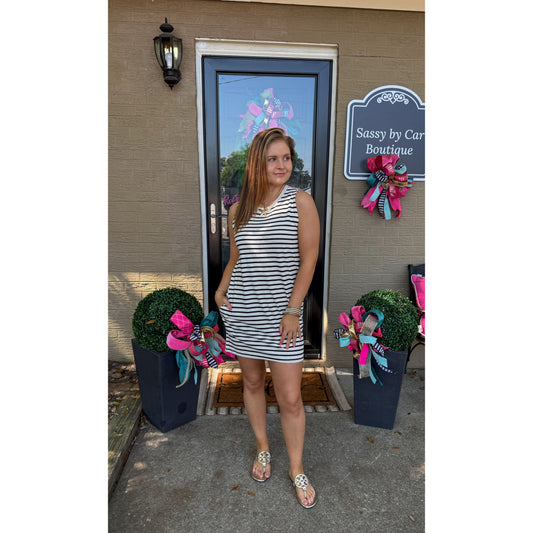 Eloise Stripe Mini Dress, Black/Ivory