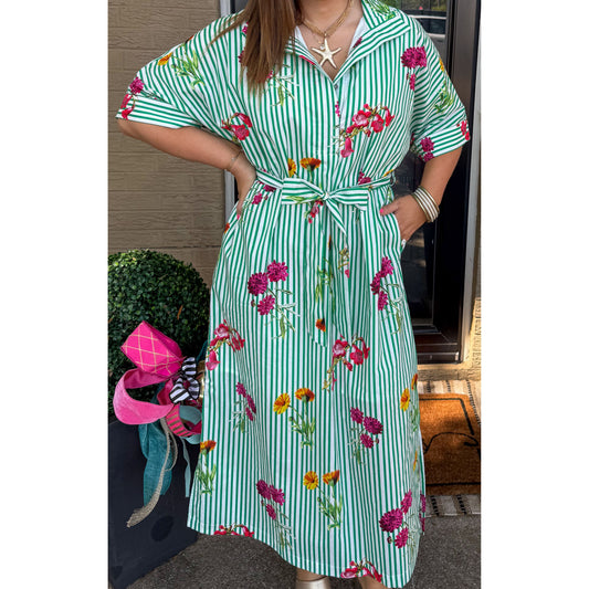 Lilly Detail Midi Dress, Green Multi