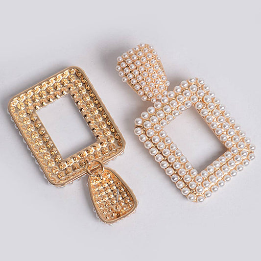 Open Cut Rectangle Pearl Earrings