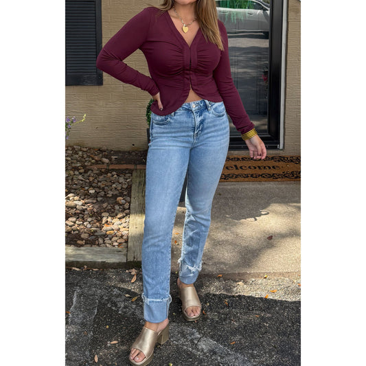Amy French Terry Sweatshirt, Chocolate/Denim