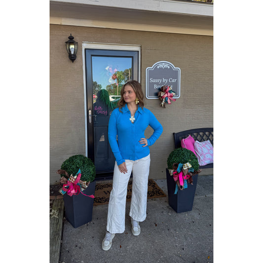 Alma Detail Top, Ocean Blue