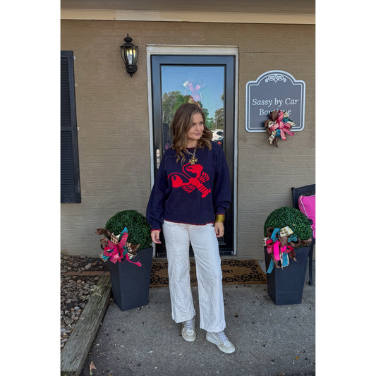 Crawfish Sweater, Navy/Red
