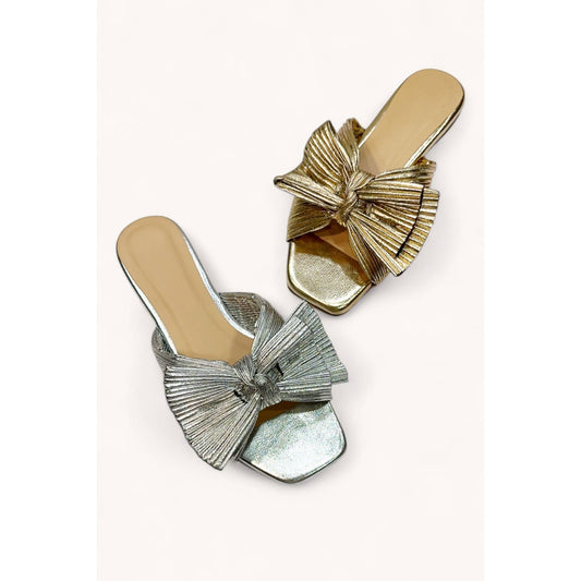 PLEATED BIG RIBBON UPPER SANDALS, GOLD
