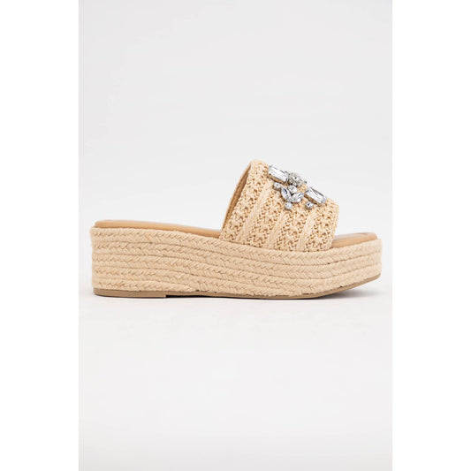 MONACO RHINESTONE EMBELLISHED RAFFIA CHUNKY SANDAL