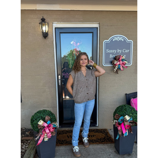 Sold outMulti-Color Bow Sweater, Taupe Multi