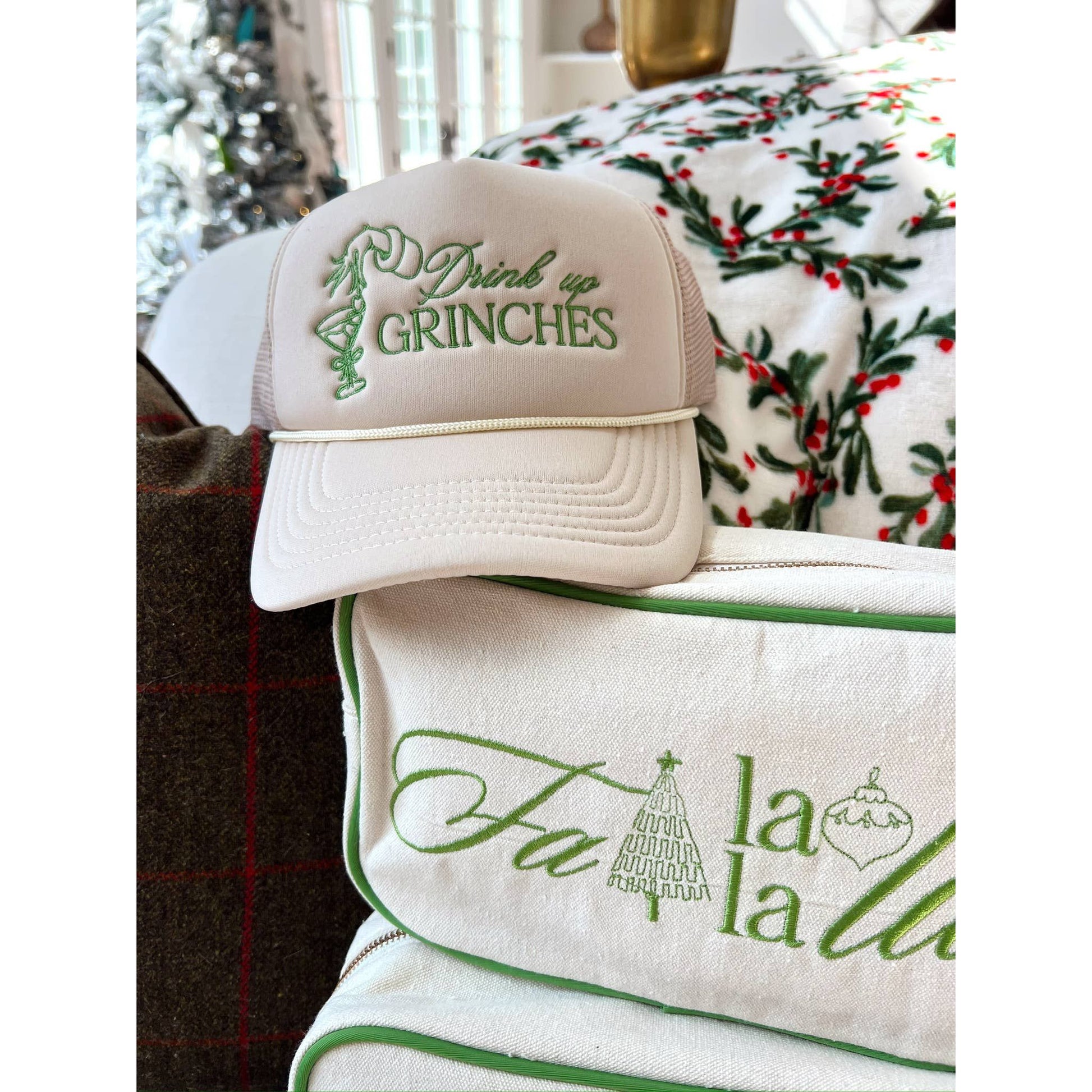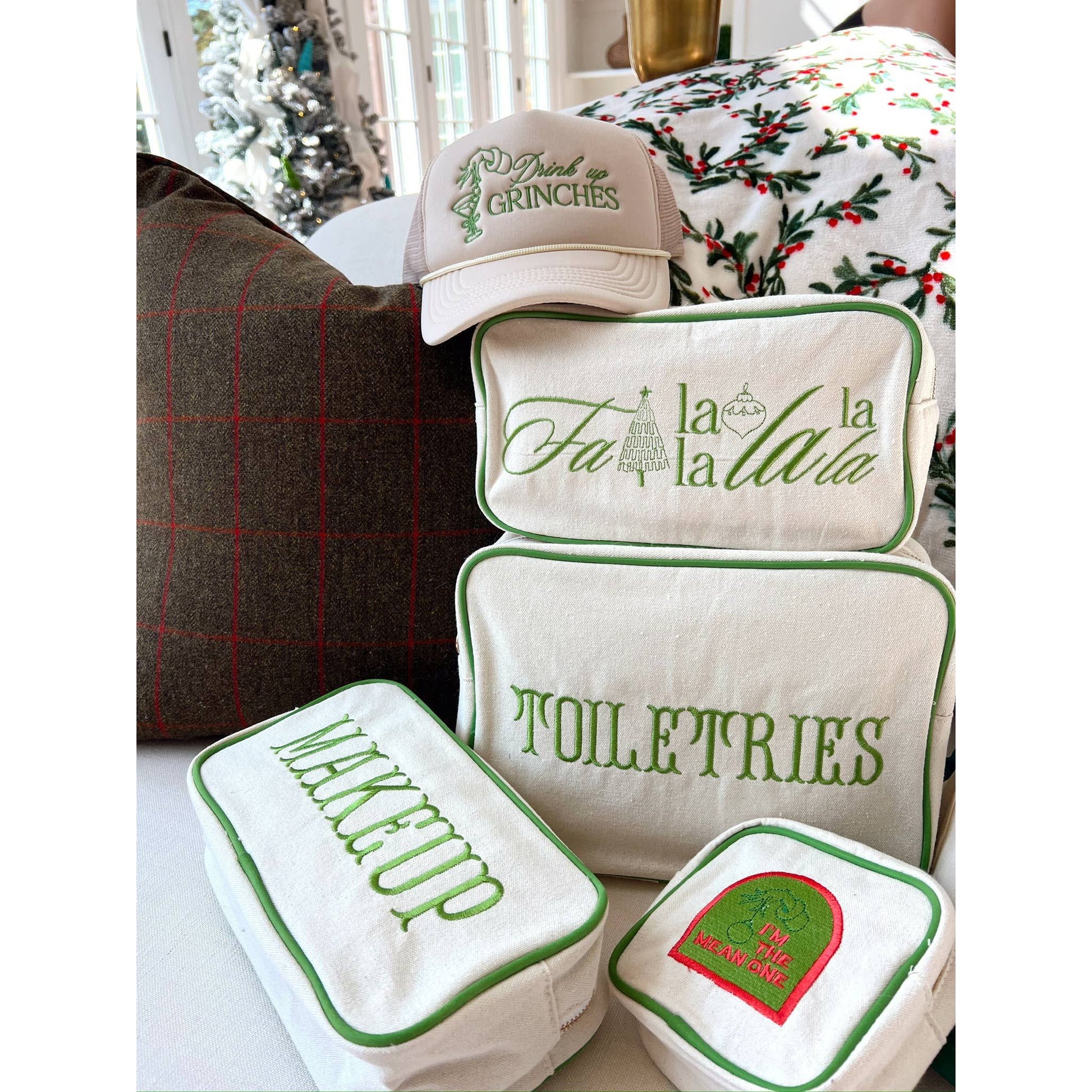 Our first green canvas falala bag with this super fun design embroidered giving all the festive feels! Great for gifting this holiday season