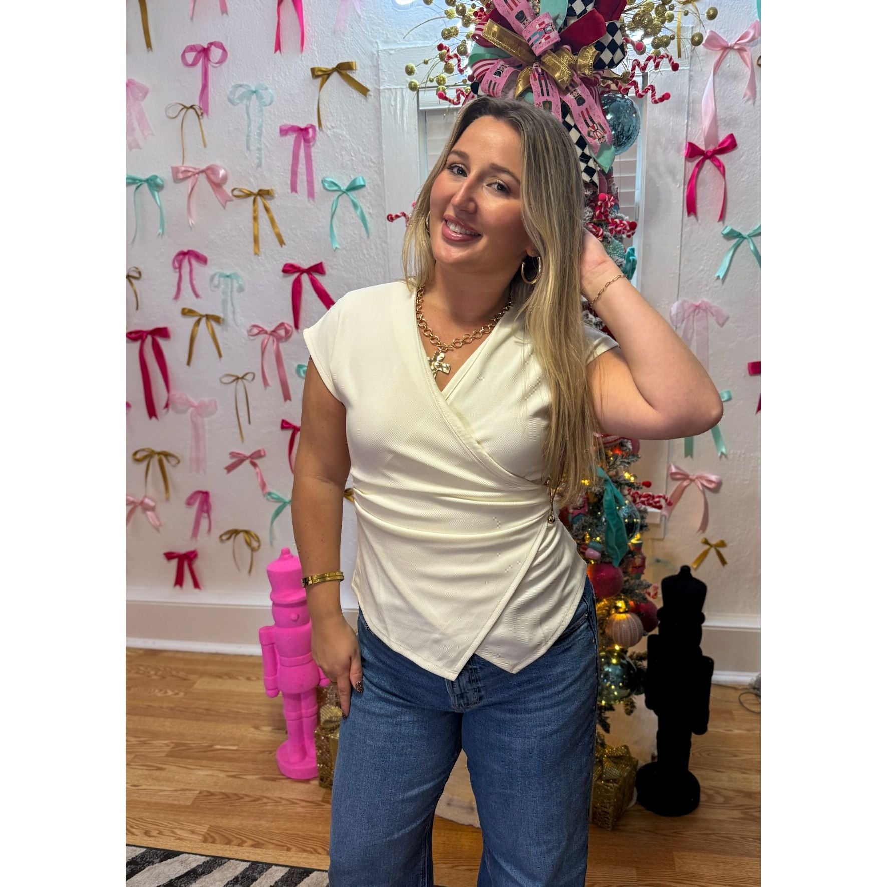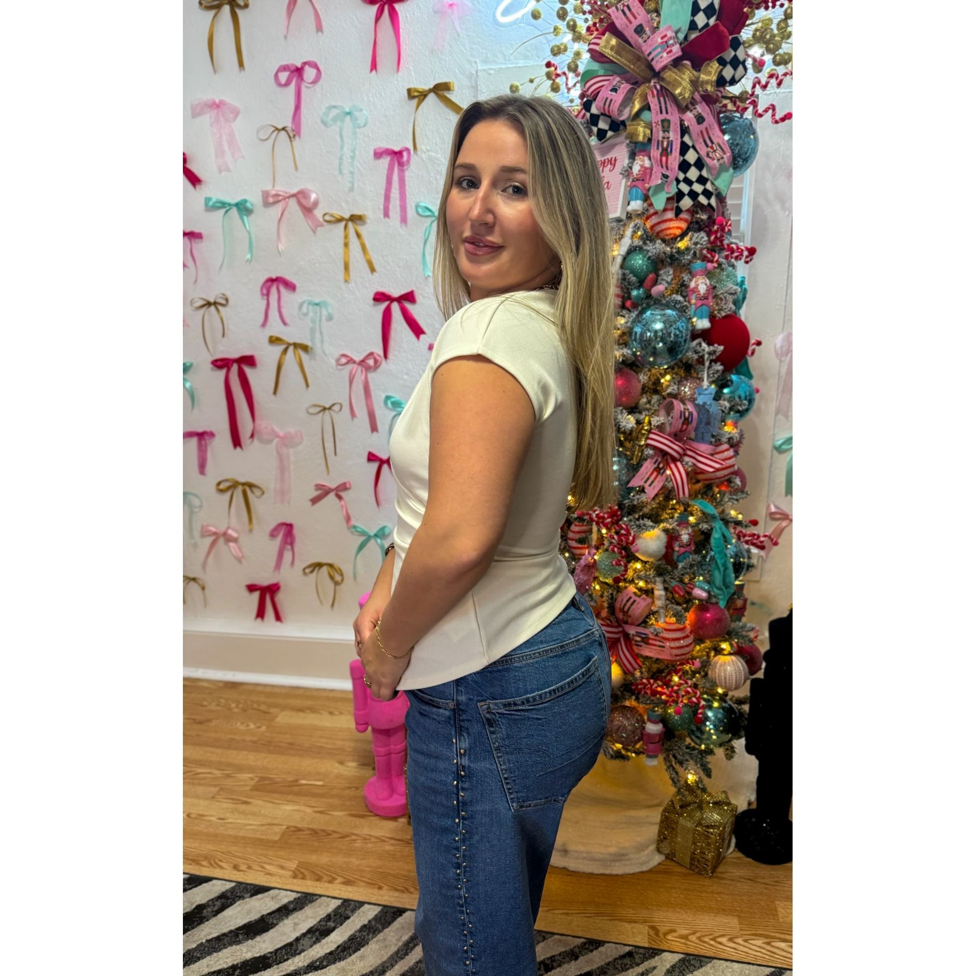 Measurements: Sarah is 5'4, size S/M in tops, size M in dresses, M/L rompers, a 11/30 in jeans, size 8, & her bust: 34A cup