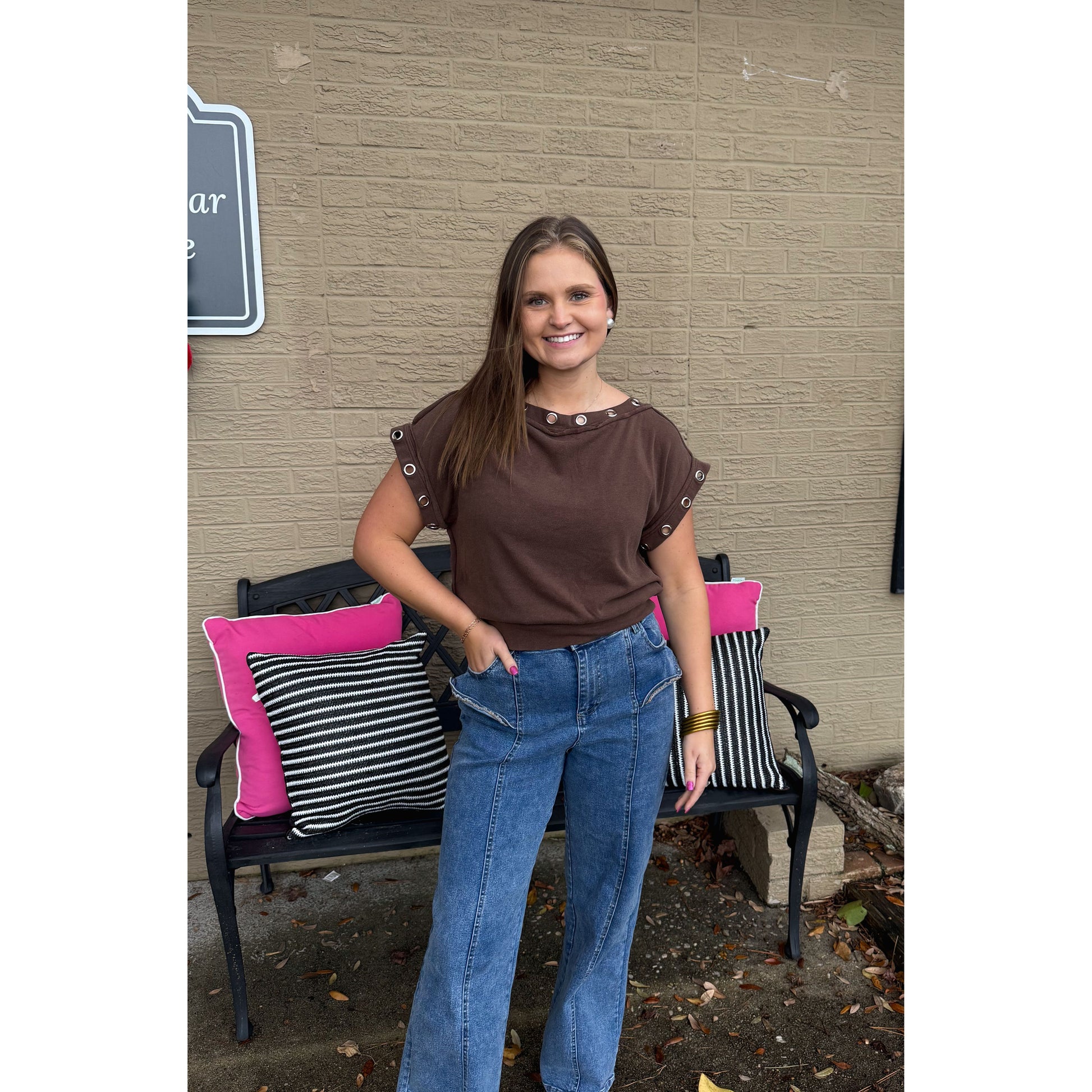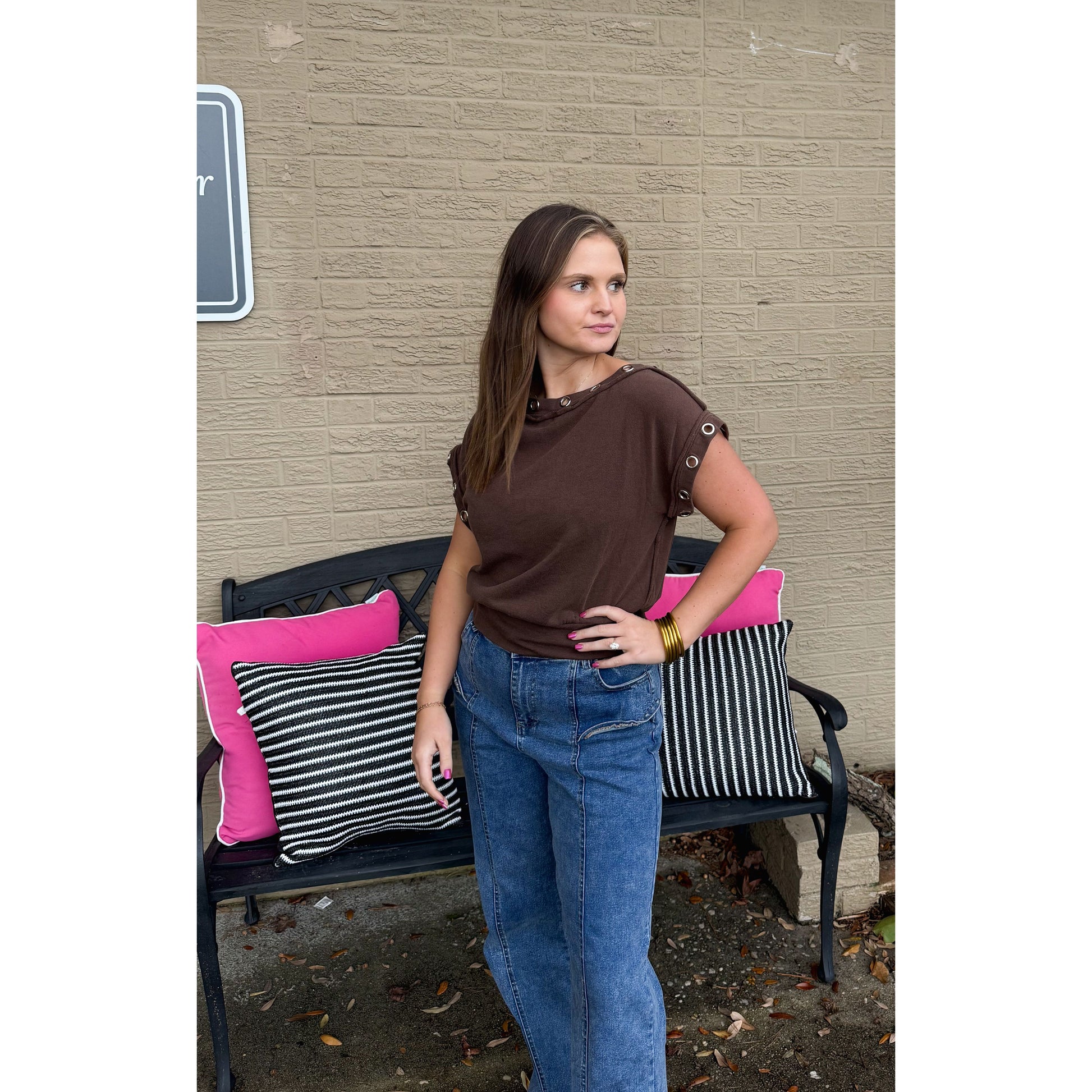 Millie Detail Top, Chocolate Brown