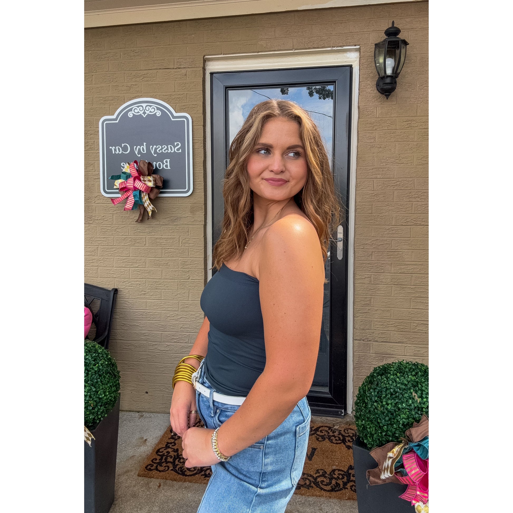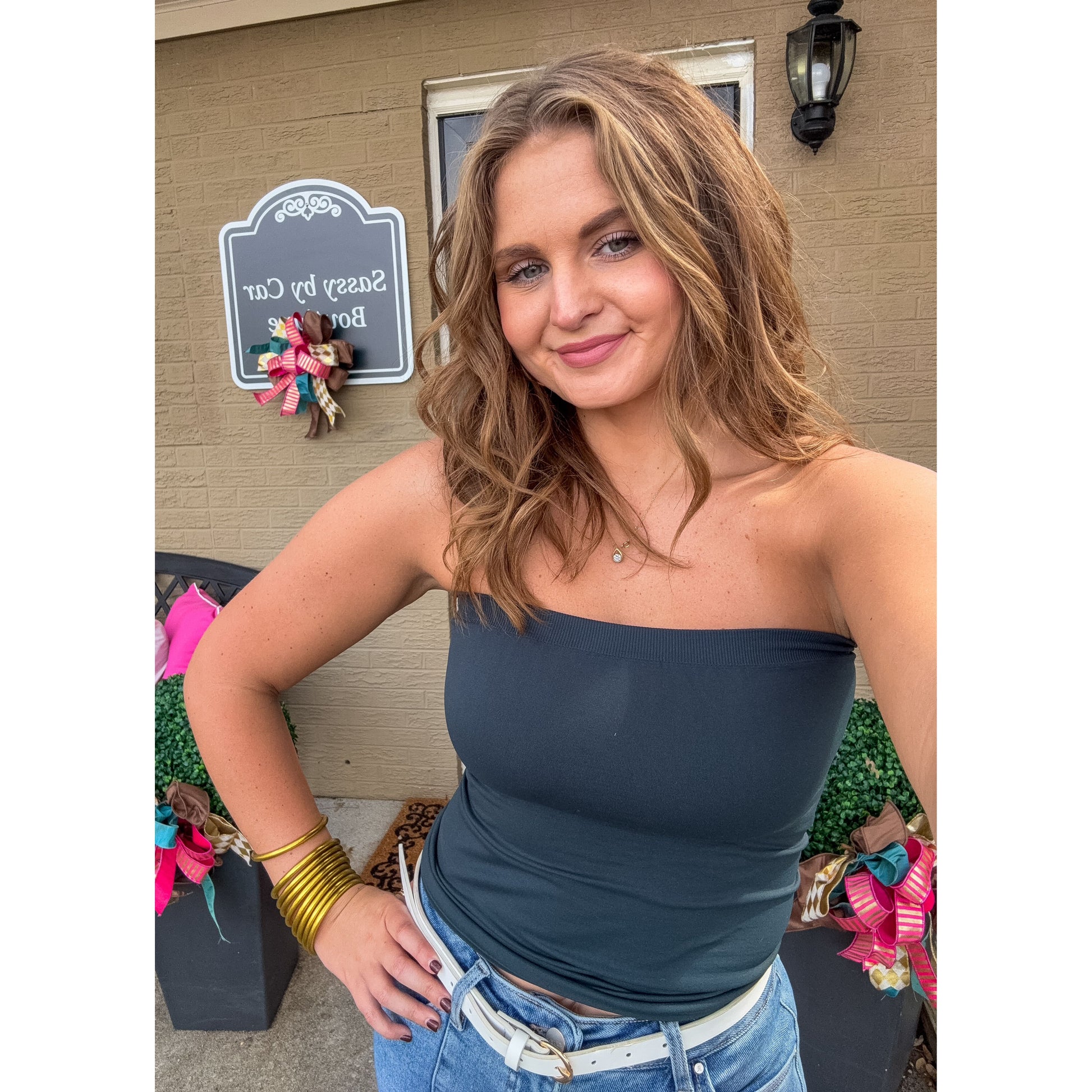 One Size Made in USA Fabric: 92% Nylon / 8% Spandex Basic New Style Classic tube top offers a smooth, fitted look that hugs the body, highlighting a sleek silhouette. The tube top's strapless design. It's a versatile piece, perfect for layering or wearing on its own during warmer weather.
