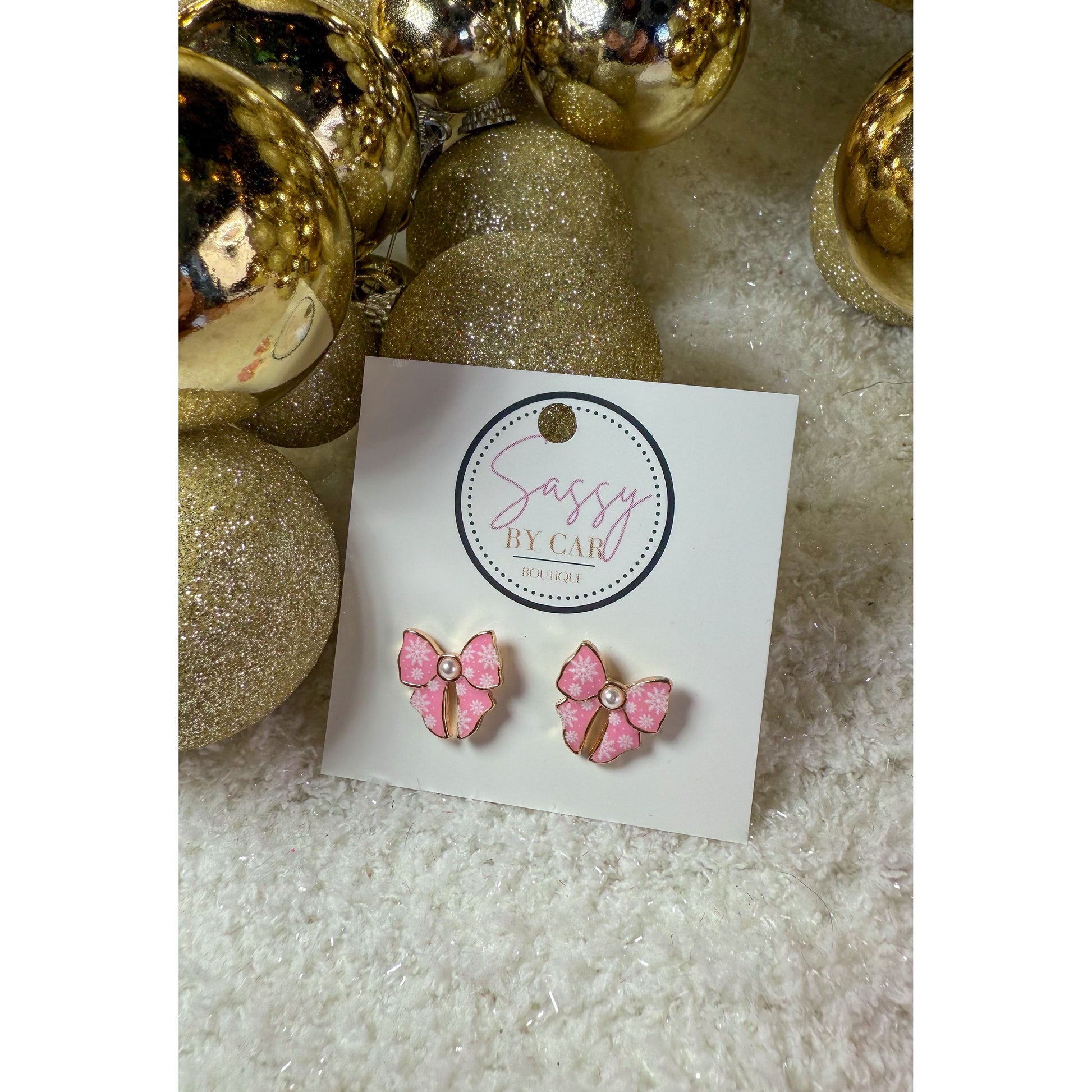 Pink/White Bow Studs