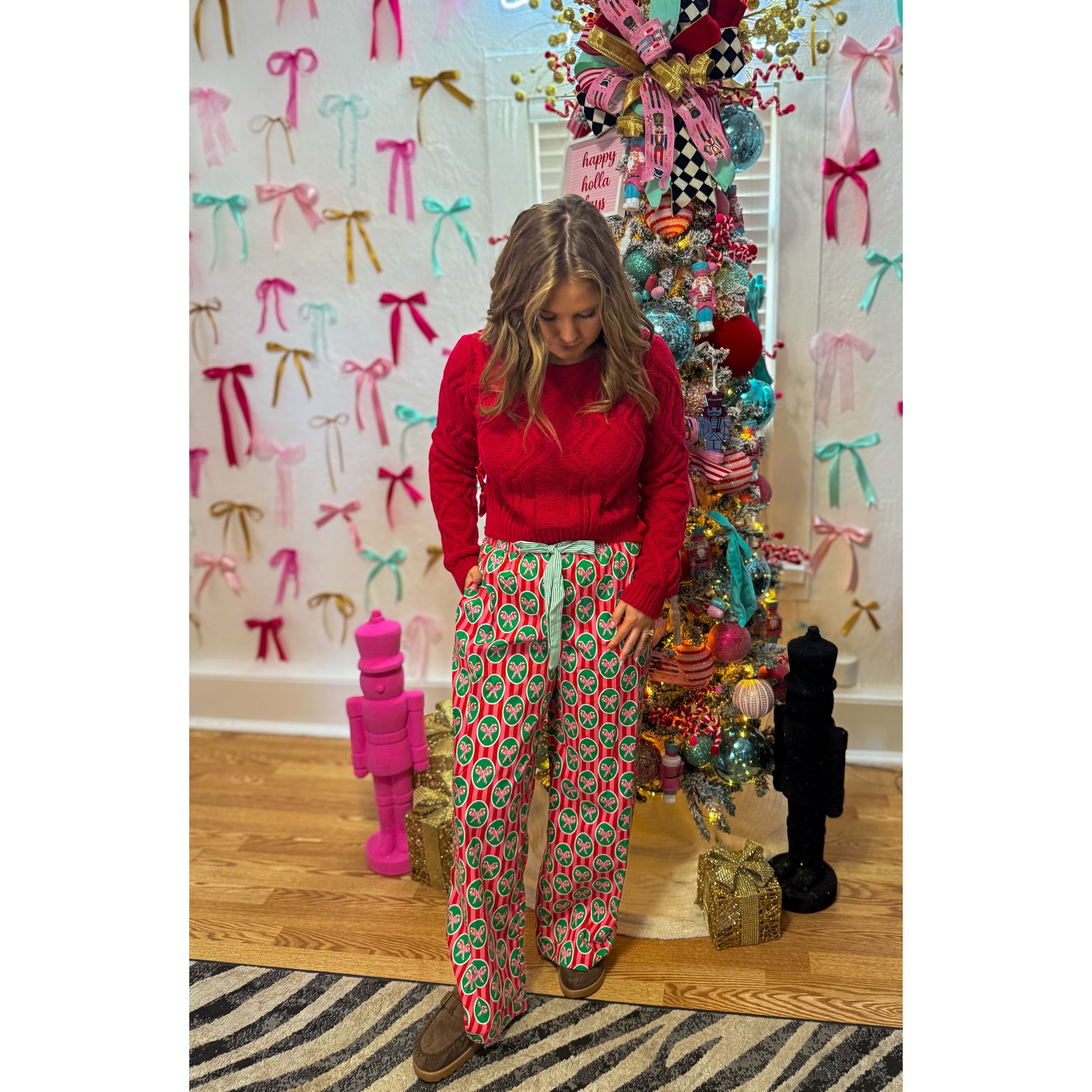 Crop red knit sweater with bow tie detail along the sides and back of sweater.